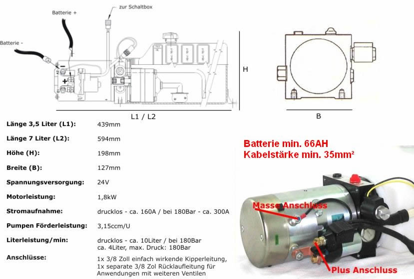 Zum kurzzeitigen Betreiben von einfachwirkenden Zylindern, wie z. B. kleine Kipperfahrzeuge, Ladebordwände, Hubarbeitsbühnen, Achsabsenkung
