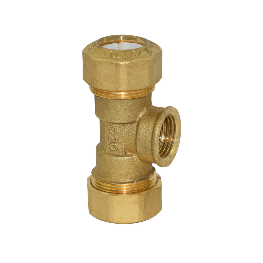 Messing T-Verbinder mit IG 1/2", für Kunststoffrohre mit Außendm. 20mm