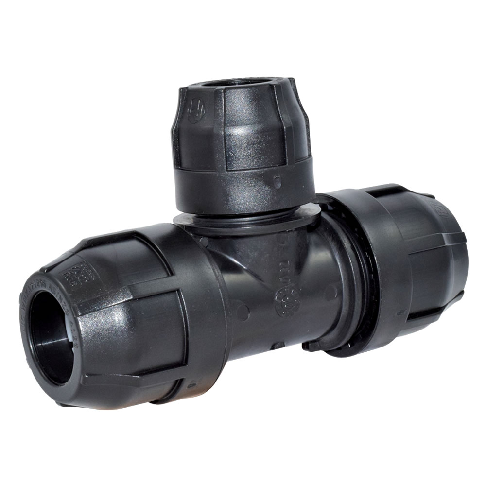 PP T-Reduzierung zum Reduzieren des Außendurchmessers 2er PE Rohre von 32mm auf 25mm.