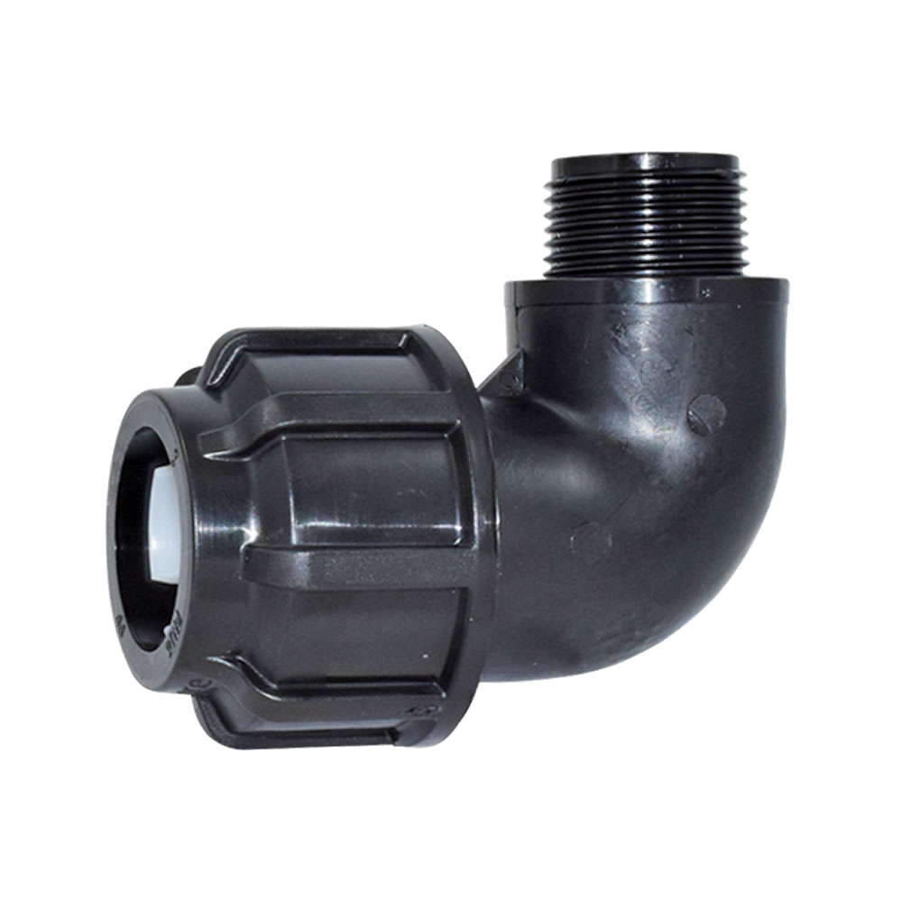 PP Winkel mit einseitigem Außengewinde zum Verbinden von PE Rohren mit einem Rohr-Außendurchmesser von 25 mm auf Gewindegröße 3/4".