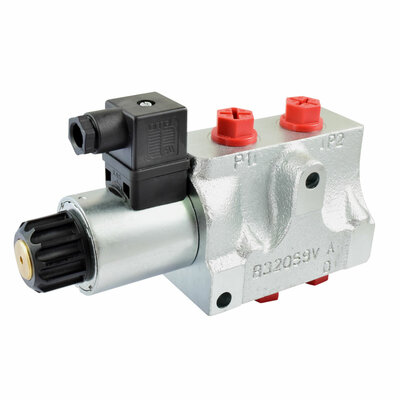 Ermöglicht die wechselseitige Bedienung zweier doppeltwirkender Verbraucher mit nur einem Steuerventil. Die Betätigung erfolgt durch einen Magneten, der über Drucktaster am Hebel des Steuerventils angesteuert wird.