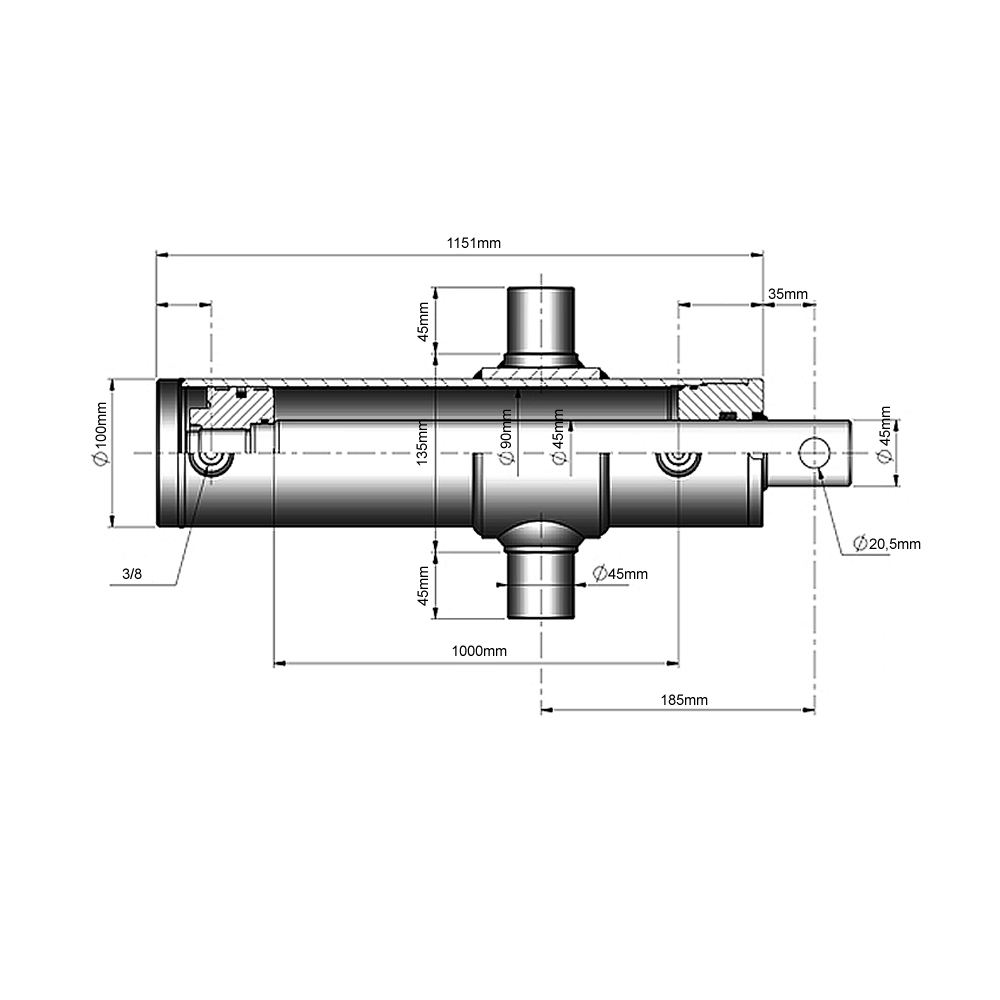 Holzspaltzylinder doppeltwirkend - Hub 1000mm, Druckkraft 127,2kn