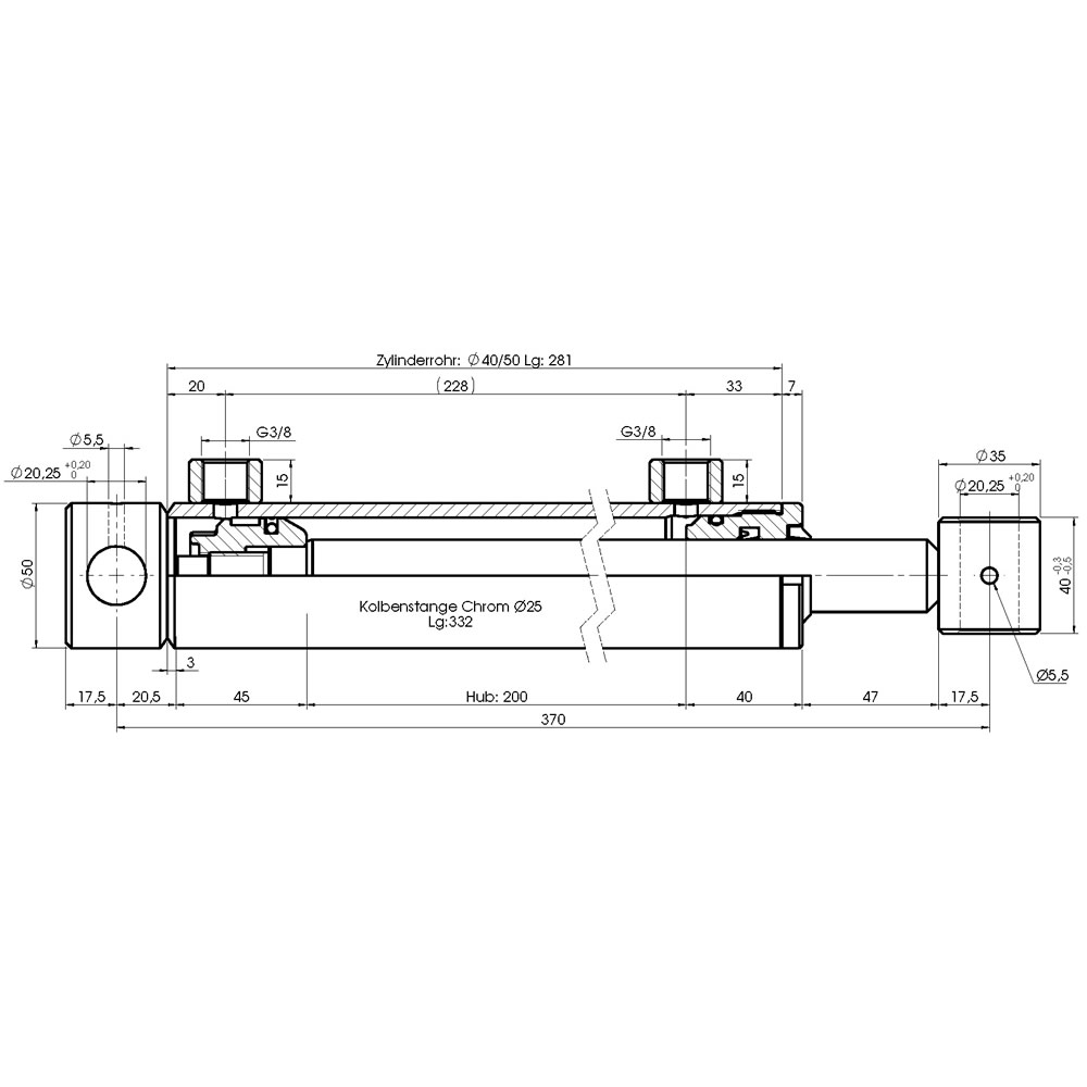 Hydraulikzylinder doppeltwirkend - Hub 200mm, Druckkraft ca. 2,5 Tonnen, 200bar