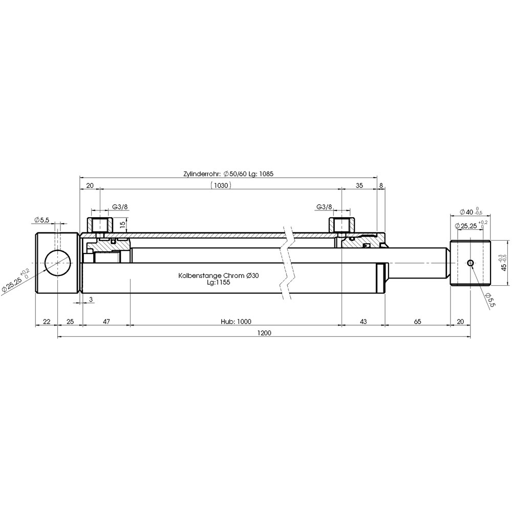 Hydraulikzylinder doppeltwirkend - Hub 1000mm, Druckkraft ca. 3,9 t, 200bar