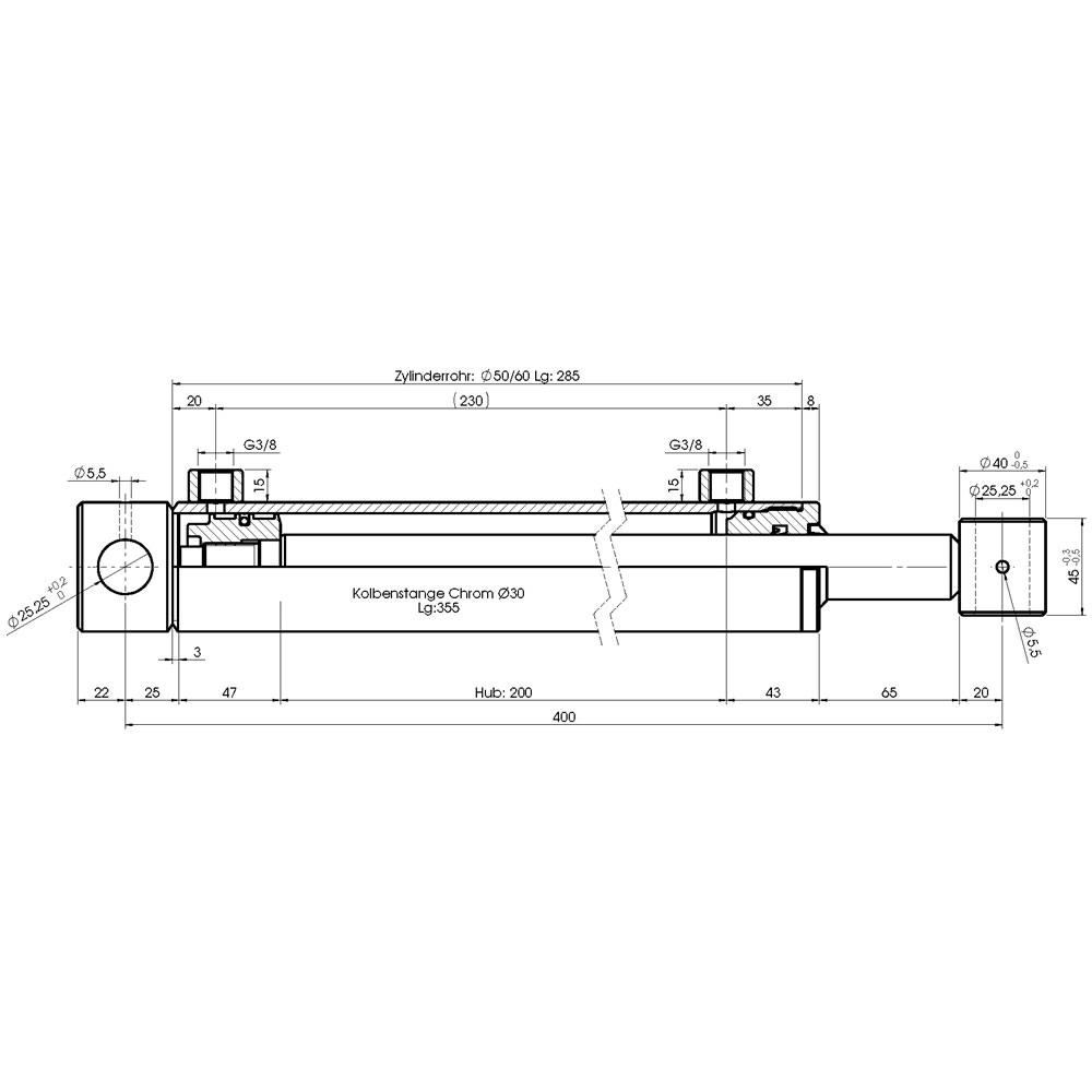 Hydraulikzylinder doppeltwirkend - Hub 200mm, Druckkraft ca. 3,9 Tonnen, 200bar