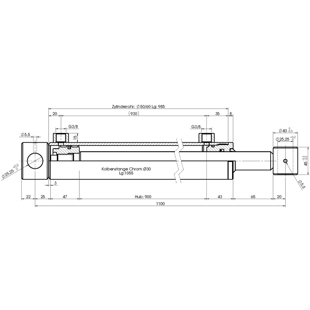 Hydraulikzylinder doppeltwirkend - Hub 900mm, Druckkraft ca. 3,9 Tonnen, 200bar