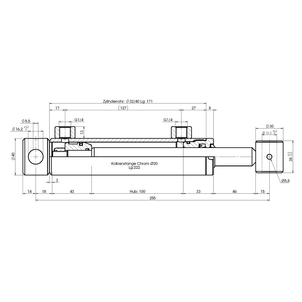 Doppeltwirkender Hydraulikzylinder - Hub 100mm