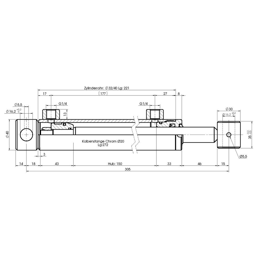 Doppeltwirkender Hydraulikzylinder - Hub 150mm