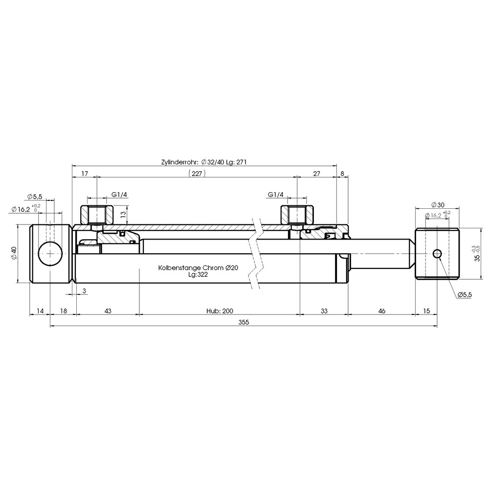 Hydraulikzylinder doppeltwirkend - Hub 200mm, Druckkraft ca. 1,6 Tonnen, 200bar