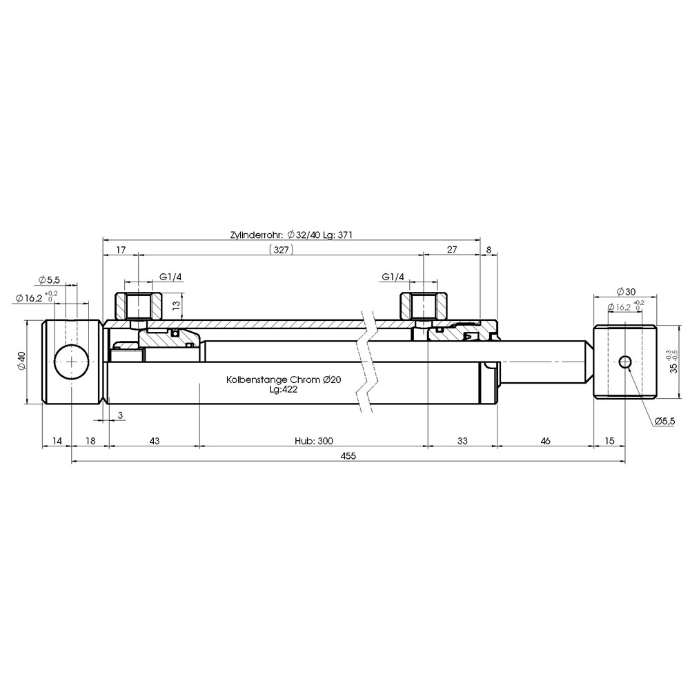 Doppeltwirkender Hydraulikzylinder - Hub 300mm