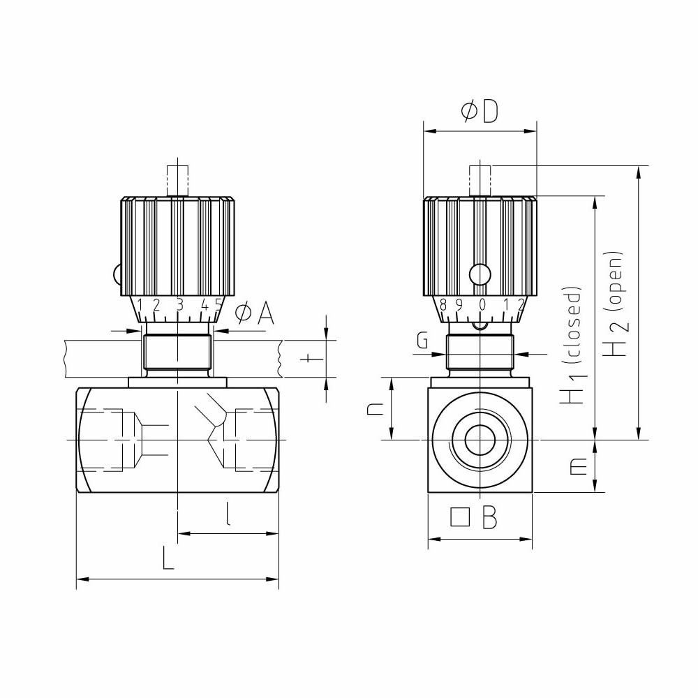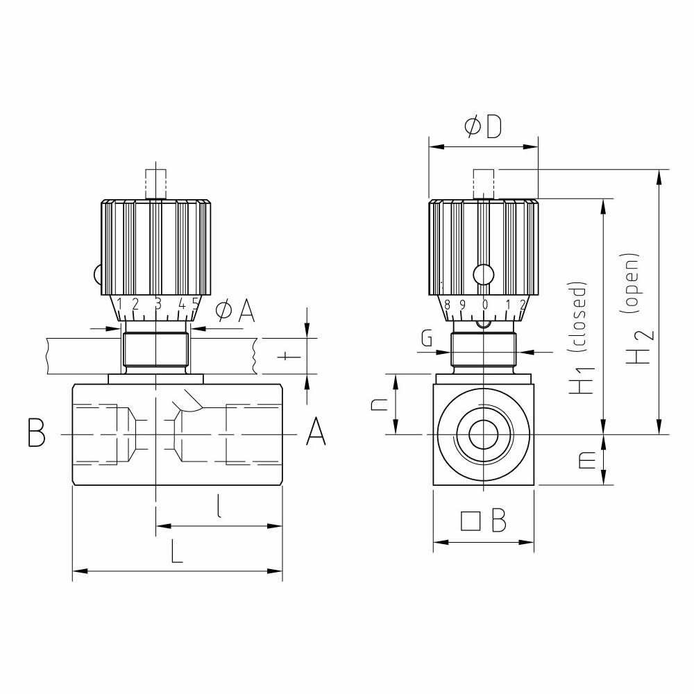 Das Drosselventil ist für Mineralöl und Luft geeignet. Das Drosselventil kann in beliebiger Lage eingebaut werden.