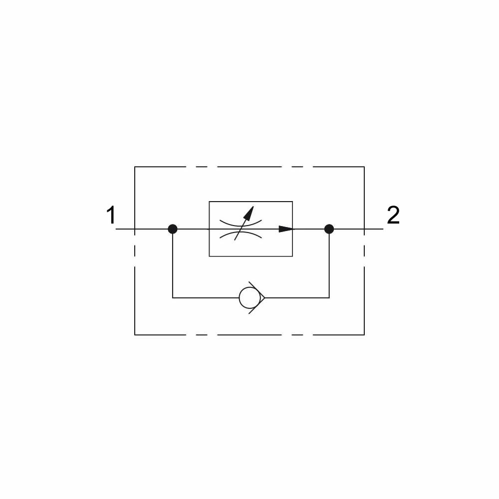 Schaltsymbol 2-Wege-Stromregler mit Rückschlagventil, kompensiert