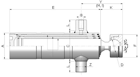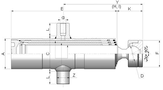 Einfachwirkender Teleskopzylinder mit Kugelgelenk (Aufhängung H)