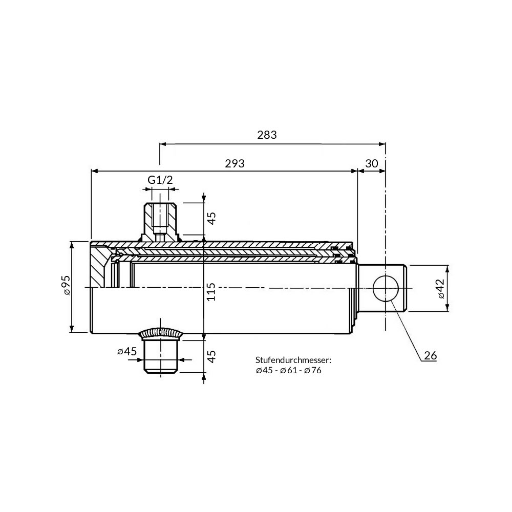 Einfachwirkender Teleskopzylinder, dreistufig, Hub 570mm Zeichnung