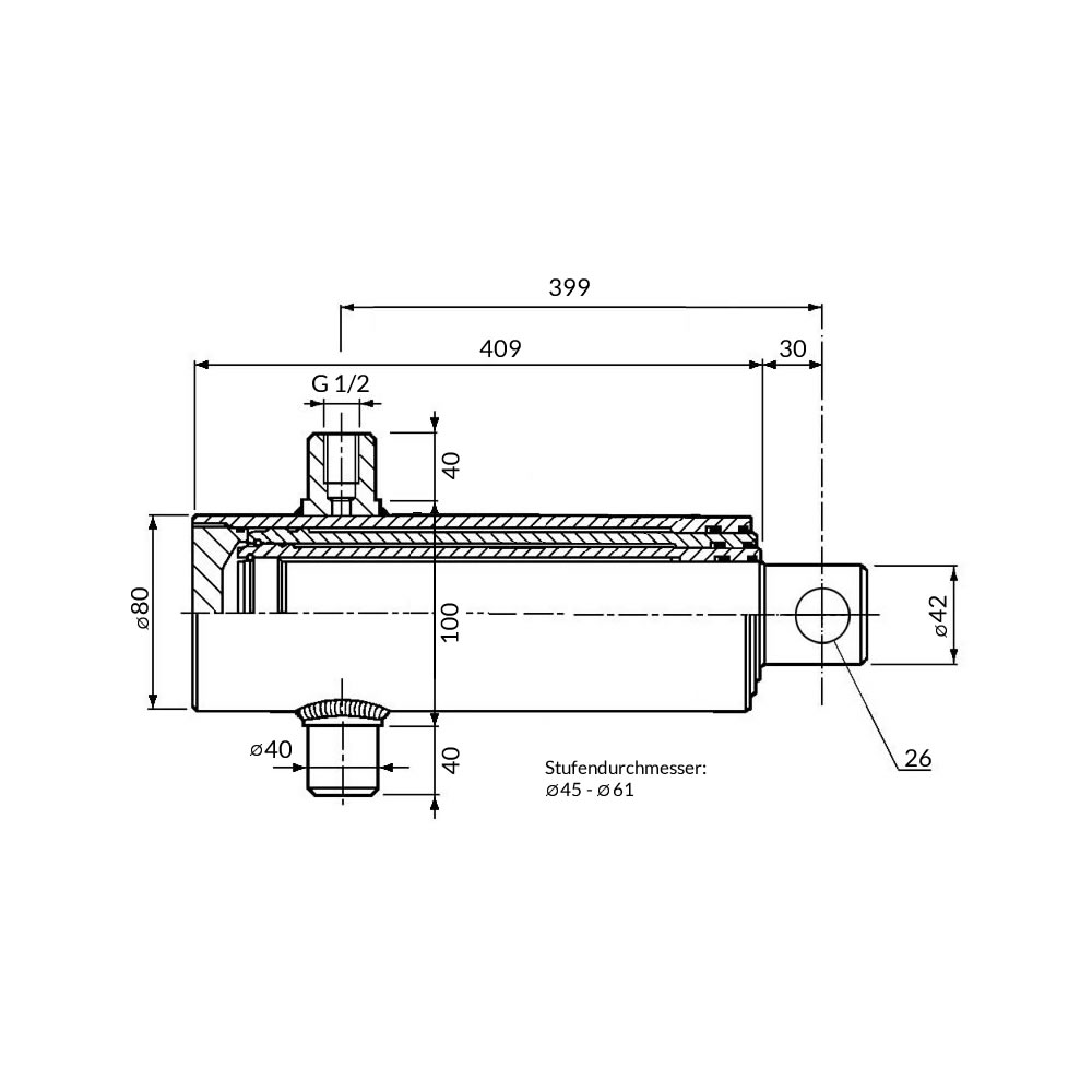 Einfachwirkender Teleskopzylinder, zweistufig, Hub 620mm