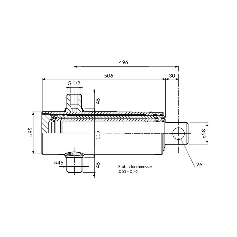 Einfachwirkender Teleskopzylinder, zweistufig, Hub 795mm