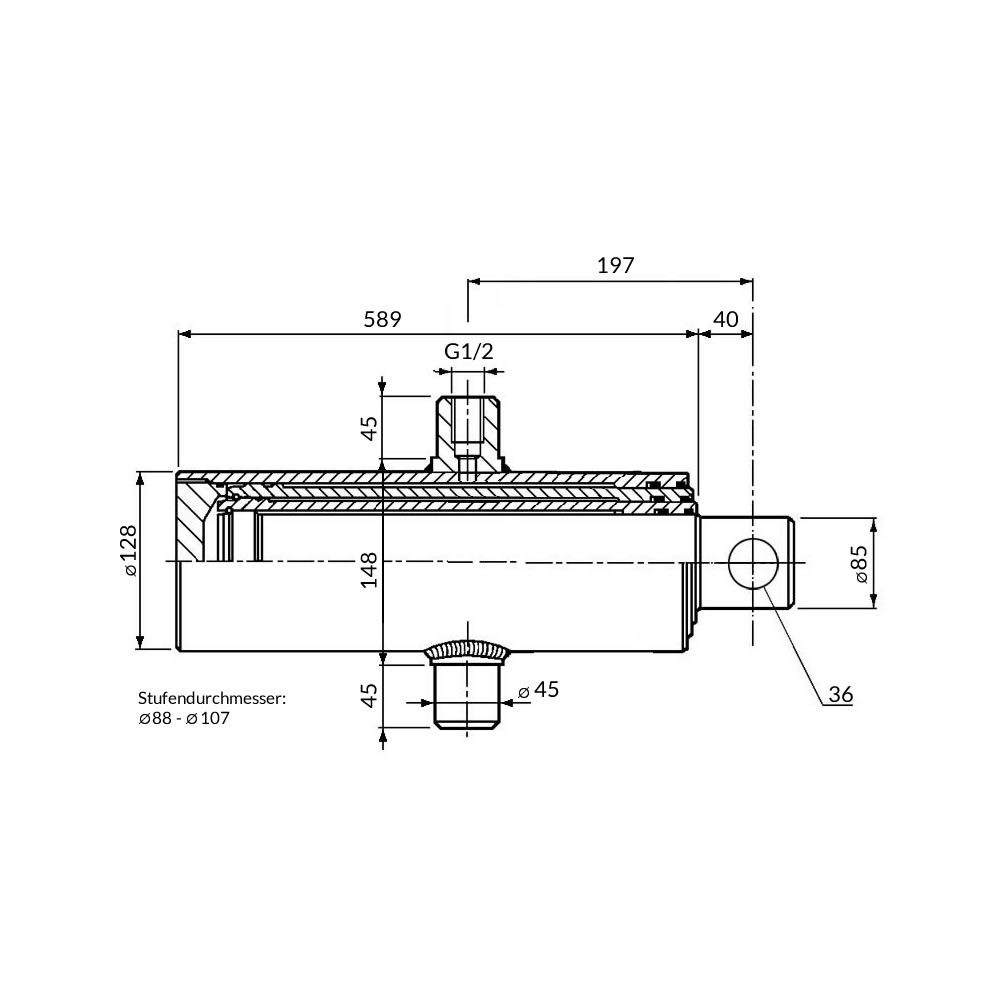 • Druckkraft 1. Stufe: 121,6kN bei 200bar