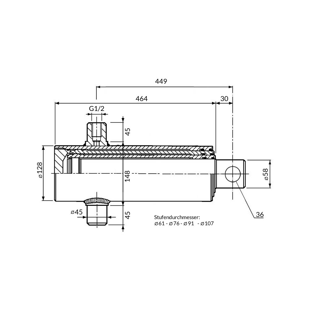 • Druckkraft 1. Stufe: 58,4kN bei 200bar