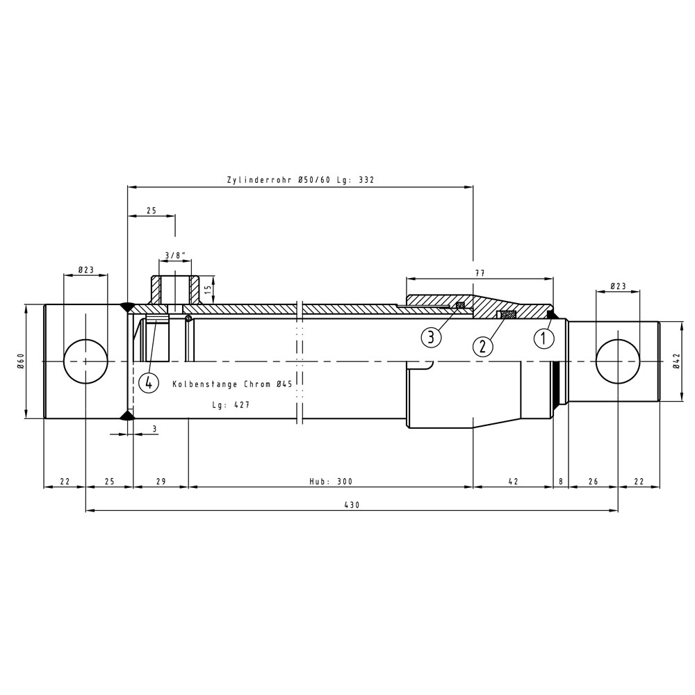 Einfachwirkender Hydraulikzylinder, Hub 300mm, Druckkraft 31,8kN