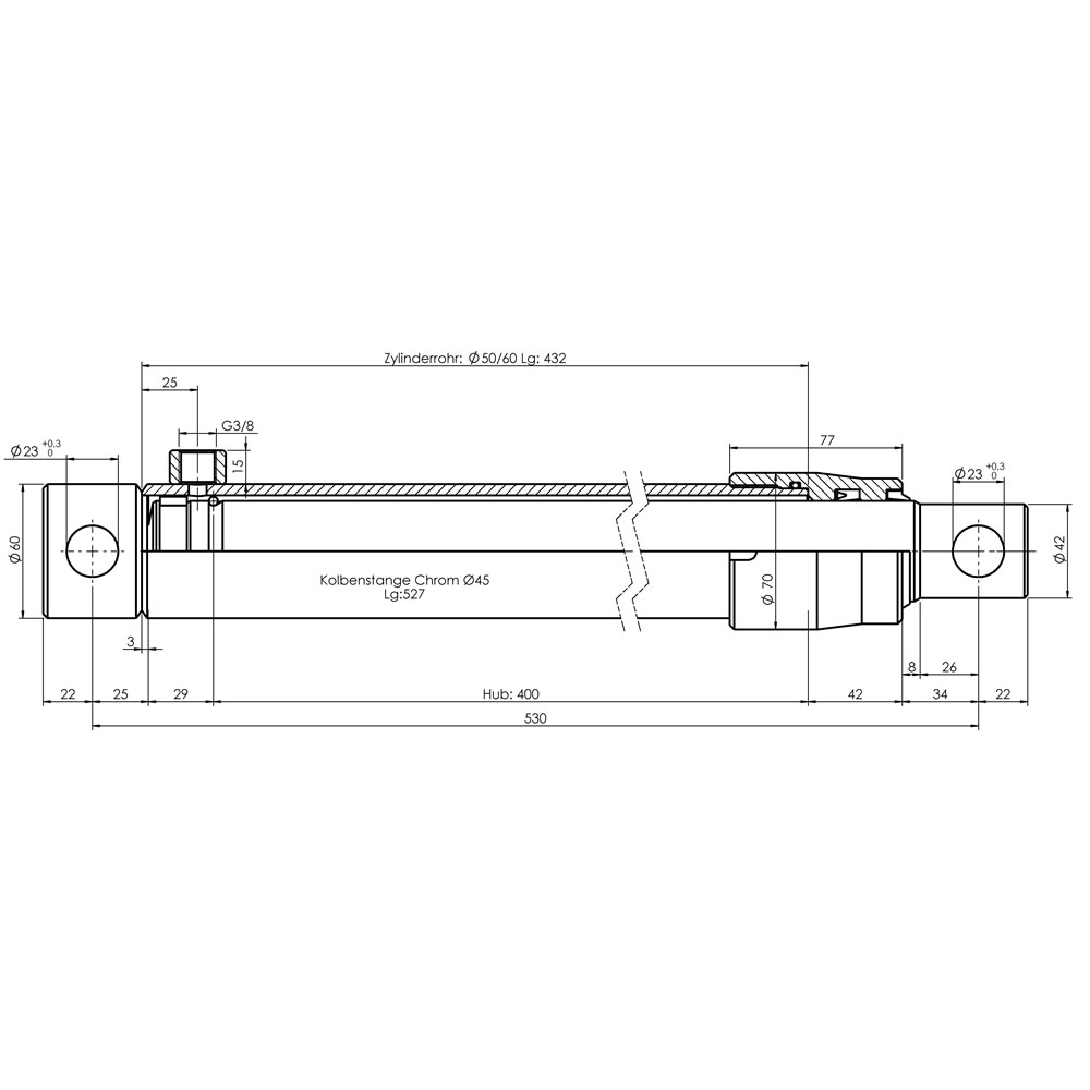 Einfachwirkender Hydraulikzylinder, Hub 400mm, Druckkraft 31,8kN