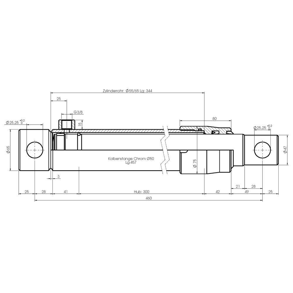 Einfachwirkender Hydraulikzylinder- Technische Zeichnung