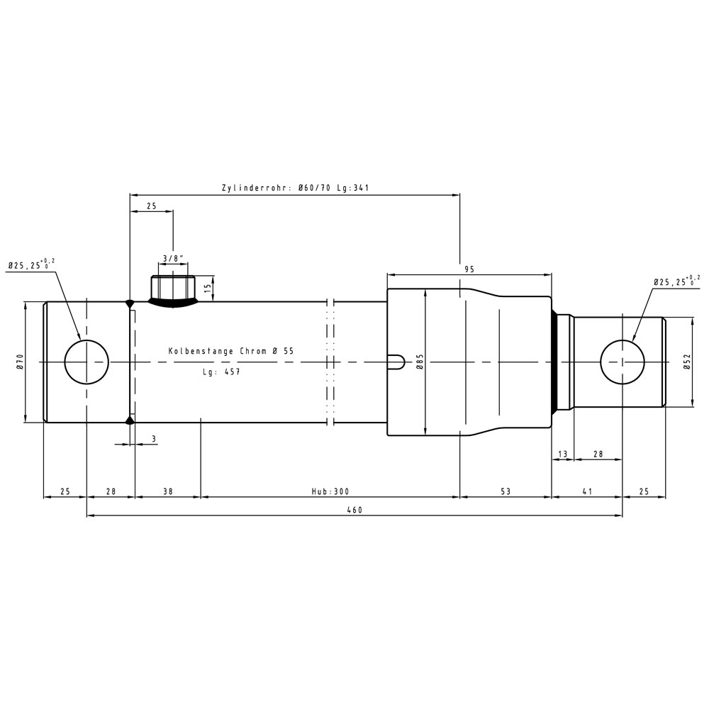 Einfachwirkender Hydraulikzylinder- Technische Zeichnung