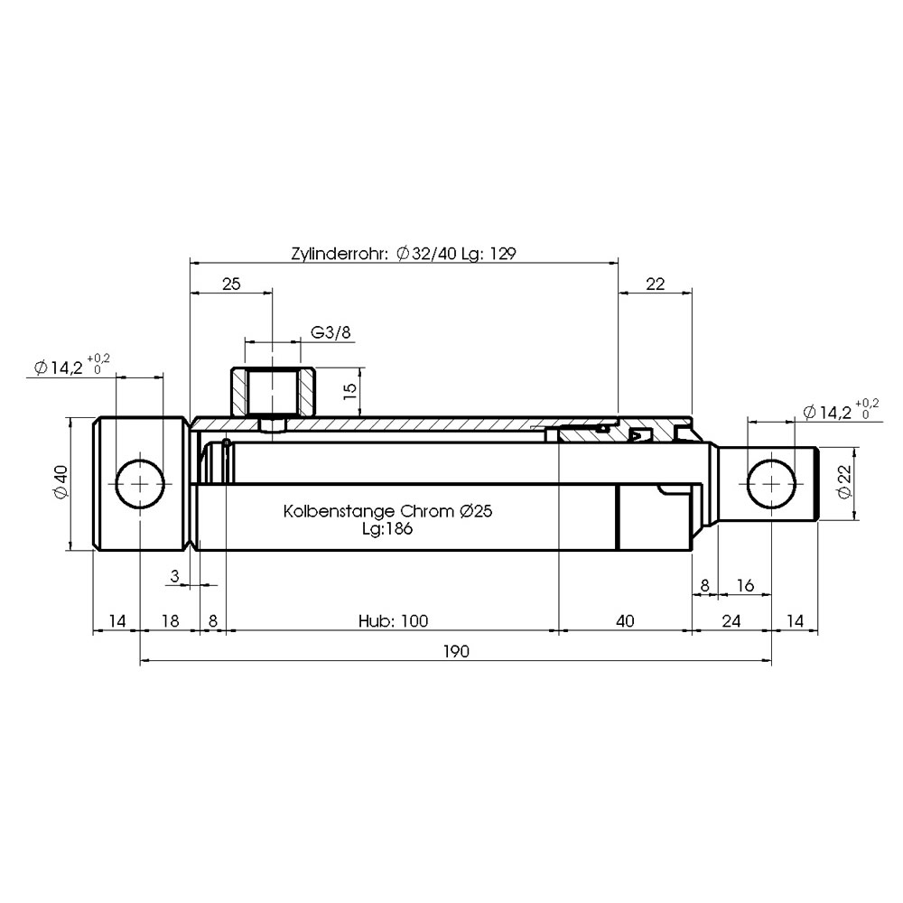 Einfachwirkender Hydraulikzylinder- Technische Zeichnung