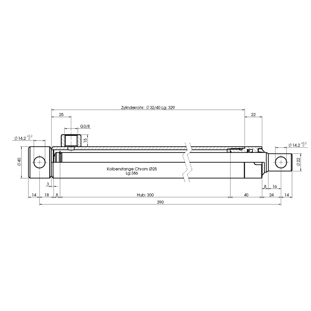 Einfachwirkender Hydraulikzylinder- Technische Zeichnung