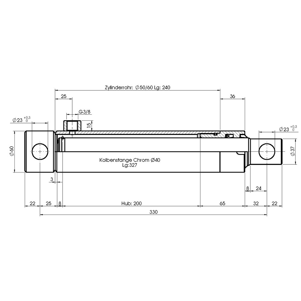 Einfachwirkender Hydraulikzylinder (A), max. 200 bar, Hubgeschwindigkeit: 0,5 m/s