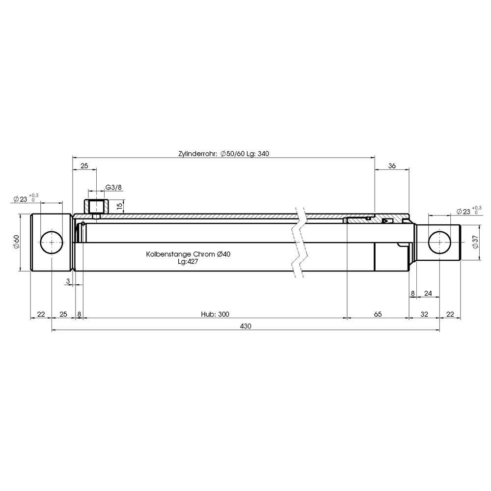 Einfachwirkender Hydraulikzylinder, Hub 300mm, Druckkraft 25,1kN