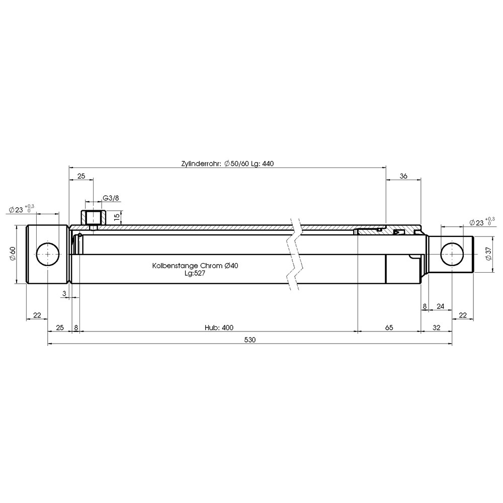 Einfachwirkender Hydraulikzylinder, Hub 400mm, Druckkraft 25,1kN