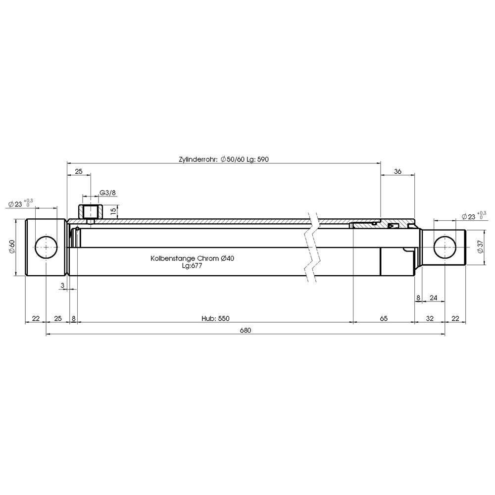 Einfachwirkender Hydraulikzylinder, Hub 550mm, Druckkraft 25,1kN