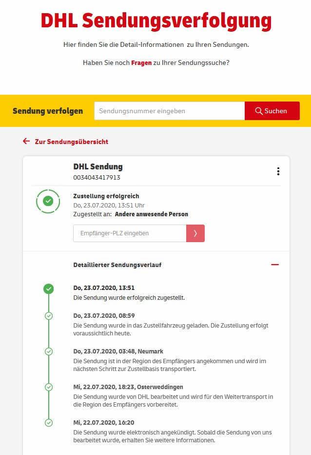 Sie tracken Ihre Sendung direkt aus Ihrem Kundenkonto.