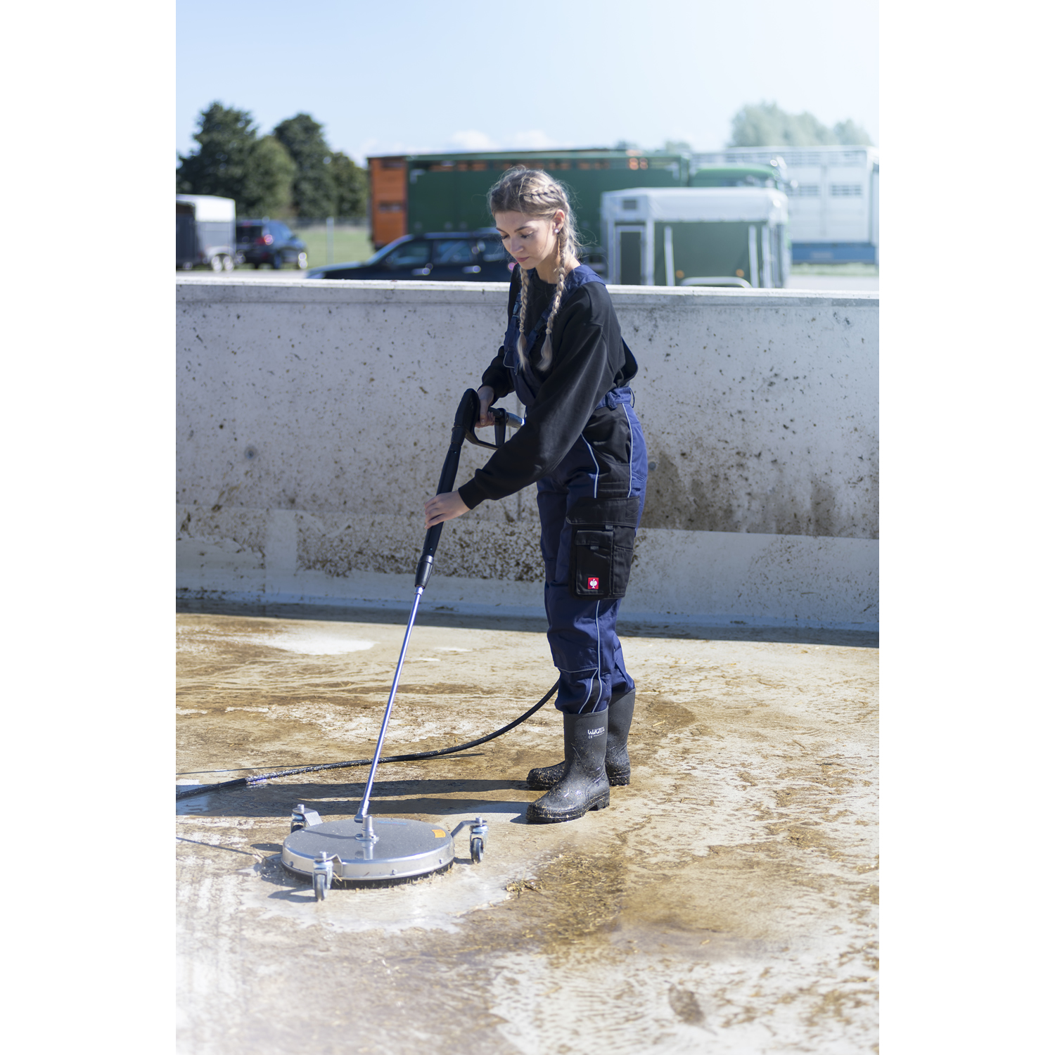 Der Bodenwäscher und Terrassenreiniger Kränzle Round Cleaner Inox 410mm ist ideal zum Reinigen von großen und kleinen ebenen Flächen, wie Einfahrten, Gehwegen und Terrassen geeignet. Der Terrassenreiniger ist mit 2 Düsen (entspricht Düsengröße 045) ausgestattet und verfügt über einen Spritzwasserschutz. Das Gehäuse besteht aus hochwertigem Edelstahl.