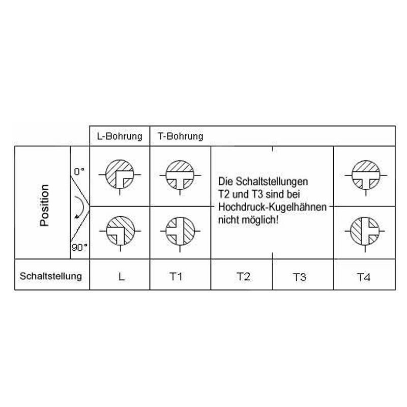 3-Wege-Hochdruck-Kugelhahn mit T-Bohrung und Außengewinde M16x1,5 der leichten Reihe.