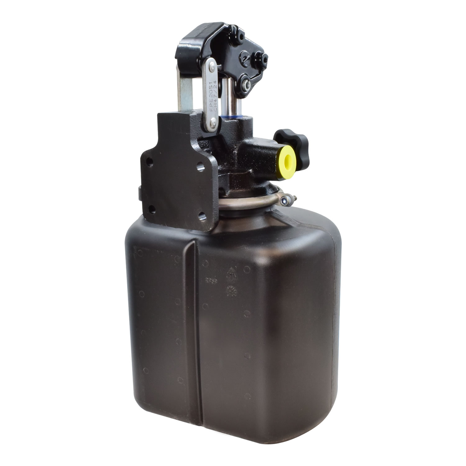 Diese Hydraulikpumpe ist für den Einsatz an Anhängern oder Kippern gedacht. Die wahlweise Bedienung per Handhebel (einfachwirkende Handpumpe) oder Akkuschrauber (Zahnradpumpe) ermöglicht eine flexible Handhabung.
