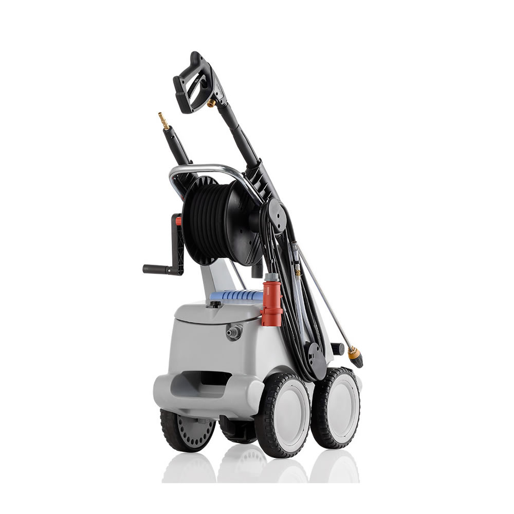 Die Kränzle quadro-Serie beinhaltet alle Vorteile der Profi-Serie und erreicht in puncto Stabilität durch 4 Räder und das Doppelachsen-Fahrgestell einen neuen Höhepunkt. Sein überdimensioniertes Getriebe und Ölgehäuse verlängern die Lebensdauer im Dauereinsatz deutlich. Die Kränzle quadro-Serie bietet bewährte Kränzle Qualität und Leistung. Der Hochdruckreiniger kommt voll ausgestattet und betriebsbereit mit Hochdruckschlauch, Edelstahllanze, Totalstop-System und Abschaltpistole. Die serienmäßig integrierte Schlauchtrommel und Schmutzkillerlanze sorgt für pure Effizienz beim Arbeiten.
