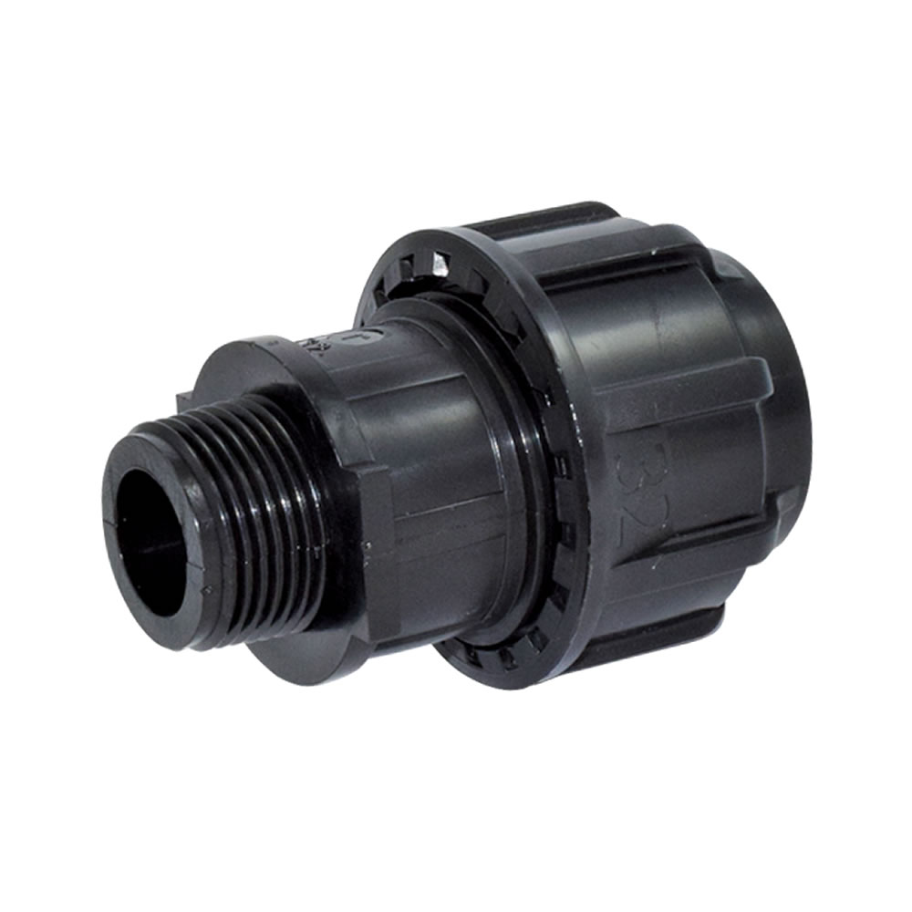 PP Kupplung mit einseitigem Außengewinde zum Verbinden von PE Rohren mit einem Rohr-Außendurchmesser 32 mm auf Gewindegröße 1".