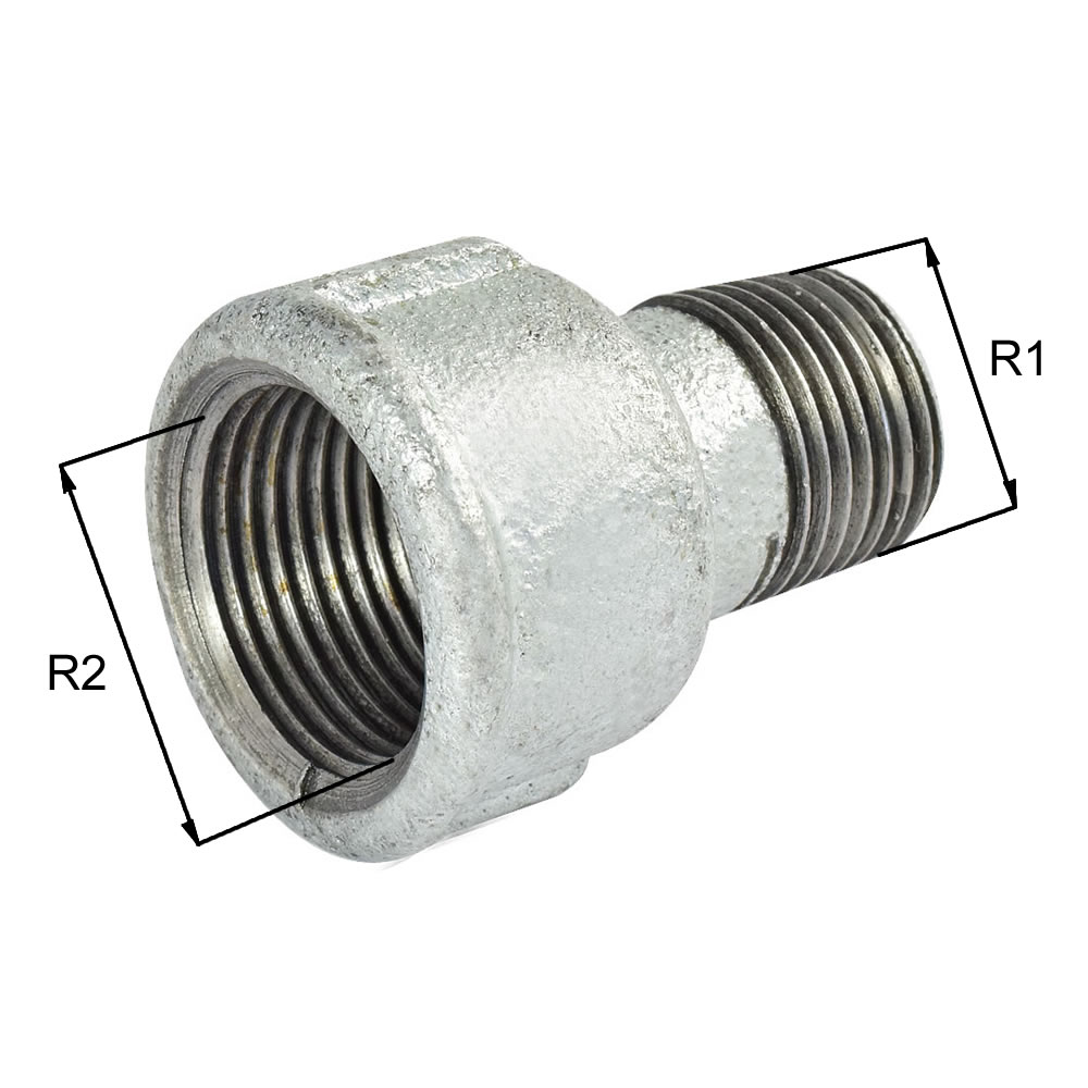 Erweiterungs-Nippel, Temperguss, verzinkt, IG/AG 1 1/4 und 1 1/2" #246