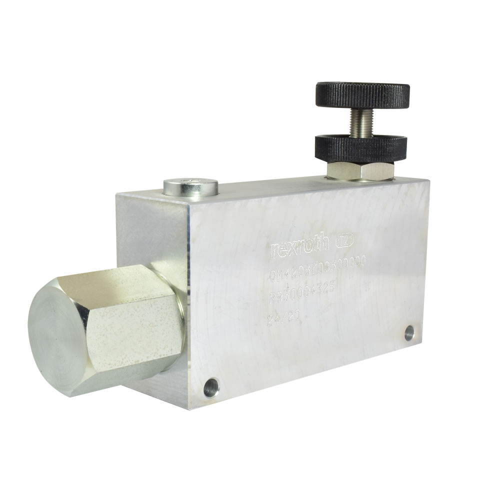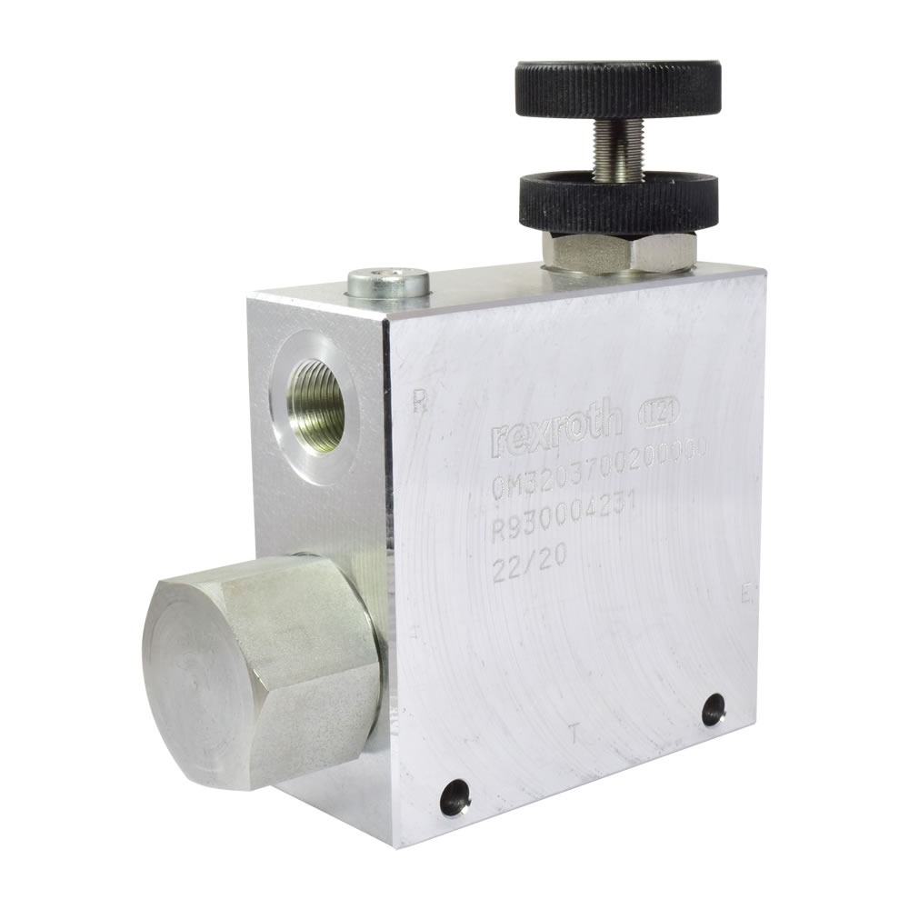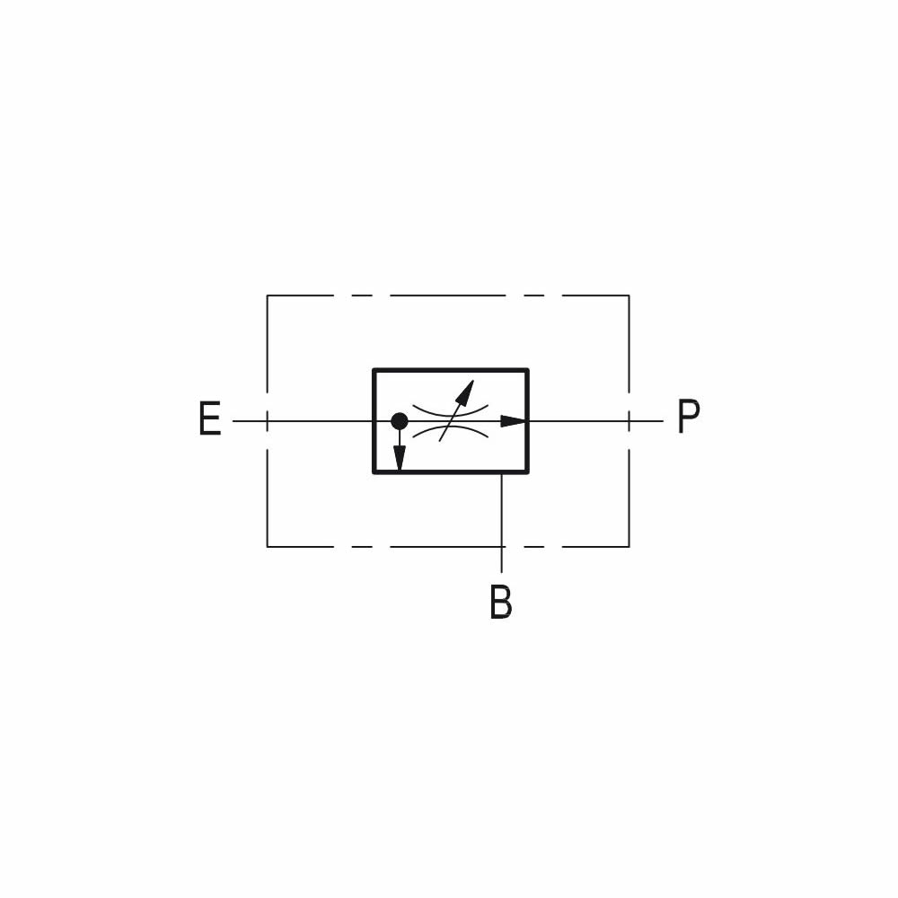 Der Stromregler ermöglicht die Bereitstellung eines vorwählbaren Konstantvolumenstroms am Anschluss R. Der Konstantvolumenstrom ist weitgehend unabhängig vom Lastdruck und der Eingangsmenge. Der überschüssige Differenzstrom wird zum Anschluss T abgeleitet und ist nicht belastbar.