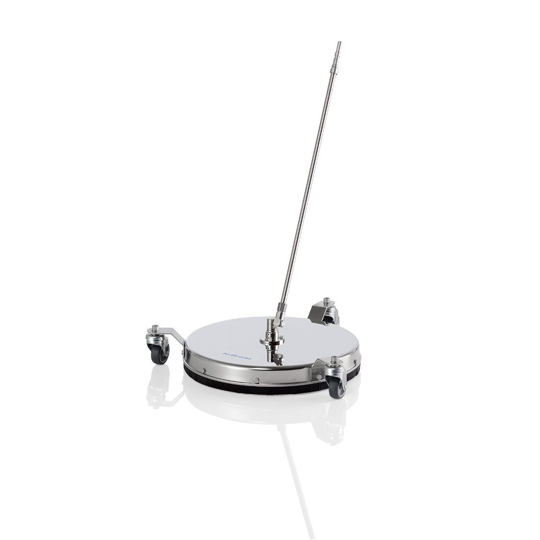 Der Bodenwäscher und Terrassenreiniger Kränzle Round Cleaner Inox 410mm ist ideal zum Reinigen von großen und kleinen ebenen Flächen, wie Einfahrten, Gehwegen und Terrassen geeignet. Der Terrassenreiniger ist mit 2 Düsen (entspricht Düsengröße 045) ausgestattet und verfügt über einen Spritzwasserschutz. Das Gehäuse besteht aus hochwertigem Edelstahl.