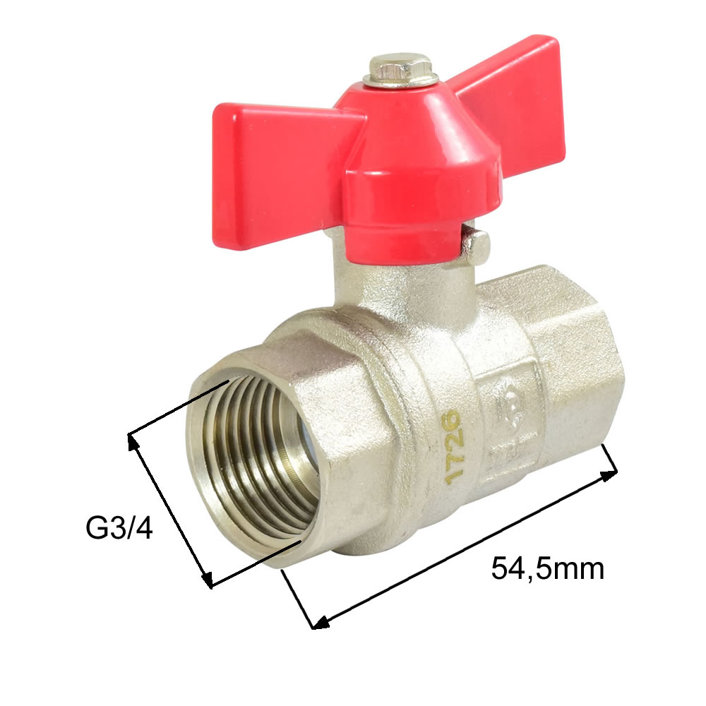 Niederdruckkugelhahn mit Flügelgriff und beidseitigem Innengewinde G3/4".