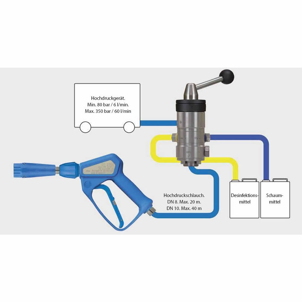 • Regulierung der Chemiedosierung erfolgt durch 2 x 10 auswechselbare Dosiereinsätze (0,5 - 2,0 mm)