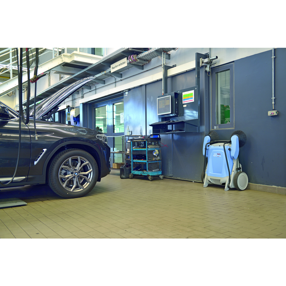 - Einfaches Handling und Entleeren des schlagfesten Kehrgutbehälters